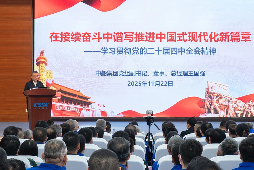 黨組成員在宣講會(huì)上強(qiáng)調(diào),學(xué)習(xí)好貫徹好黨的二十屆四中全會(huì)精神是當(dāng)前和今后一個(gè)時(shí)期的重大政治任務(wù)。要更加緊密地團(tuán)結(jié)在以習(xí)近平同志為核心的黨中央周圍,全面貫徹習(xí)近平新時(shí)代中國特色社會(huì)主義思想,把思想和行動(dòng)統(tǒng)一到黨中央對(duì)形勢(shì)的科學(xué)判斷和決策部署上來,狠抓各項(xiàng)工作落實(shí)。要堅(jiān)持創(chuàng)新驅(qū)動(dòng),抓住新一輪科技革命和產(chǎn)業(yè)變革歷史機(jī)遇,加快推進(jìn)高水平科技自立自強(qiáng);要加快提質(zhì)升級(jí),堅(jiān)持智能化、綠色化、融合化方向,爭當(dāng)建設(shè)現(xiàn)代化產(chǎn)業(yè)體系的排頭兵;要全面深化改革,進(jìn)一步解決制約高質(zhì)量發(fā)展的卡點(diǎn)堵點(diǎn)問題,持續(xù)增強(qiáng)發(fā)展動(dòng)力和活力;要強(qiáng)化根魂優(yōu)勢(shì),堅(jiān)持和加強(qiáng)黨的領(lǐng)導(dǎo)、黨的建設(shè),以高質(zhì)量黨建引領(lǐng)保障高質(zhì)量發(fā)展,確保2025年和“十四五”規(guī)劃目標(biāo)任務(wù)完成、“十五五”良好開局,為以中國式現(xiàn)代化全面推進(jìn)強(qiáng)國建設(shè)、民族復(fù)興偉業(yè)貢獻(xiàn)中船力量。