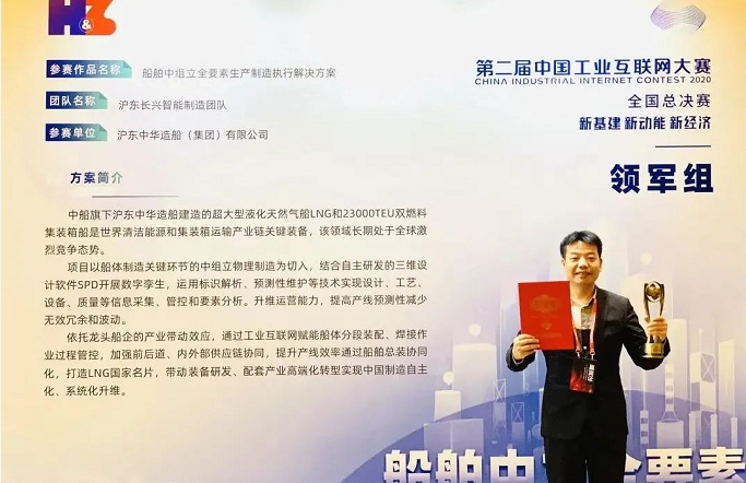 長期以來,滬東中華積極響應集團號召,聚焦工業互聯網賦能過程管控及運營能力提升,為此次參賽奠定了扎實基礎。九月底賽事啟動以來,公司分管領導準確把握賽事窗口、確定了參賽主題和比賽方向,項目團隊組建落地,先后梳理了“公司智能制造頂層規劃、焊機管控項目、SPD主要功能覆蓋場景、MES項目”等多個項目近千頁技術方案及項目建設材料,確定“以業務部門信息化理念理解透、交互要素多、信息化策略成熟、實施應用點豐富”的船體制造過程作為切入點,結合總裝型船廠分段制造環節混線生產的特征,從船體制造要素擾動較大、管理發散點多的中組立開始研究其前后道之間的內外部供應鏈關系,從中提煉了項目規劃方案。作為船舶行業唯一入圍全國總決賽并獲獎的船企,滬東中華從發展SPD自主三維設計軟件、生產管理軟件、開展工藝裝備互聯到擁抱工業互聯網促進企業核心業務運營能力提升,滬東中華“自主研發、自主可控”的信息化建設道路正在越走越遠、越走越穩。