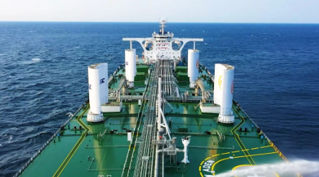 大連造船聯合中船貿易建造的30萬噸VLCC “新伊敦”輪正式命名交付。該船安裝了兩對新一代大型硬質翼型風帆,總體技術經濟指標、排放指標處于世界領先水平。