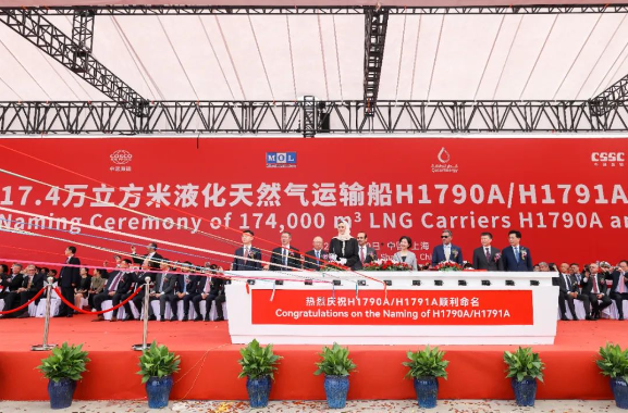 9月10日,中國船舶集團旗下滬東中華聯(lián)合中船貿(mào)易與卡塔爾能源液化天然氣公司,為“卡塔爾百船建造計劃——卡塔爾北部氣田擴能船舶購置項目”17.4萬立方米大型LNG運輸船首船“雷克斯·蒂勒森”號、2號船“烏姆·古瓦伊琳娜”號舉行命名儀式。卡塔爾能源事務(wù)國務(wù)大臣、卡塔爾能源總裁兼首席執(zhí)行官薩阿德·謝里達(dá)·阿爾卡比,中國船舶集團黨組成員、總會計師賈海英等出席命名儀式。