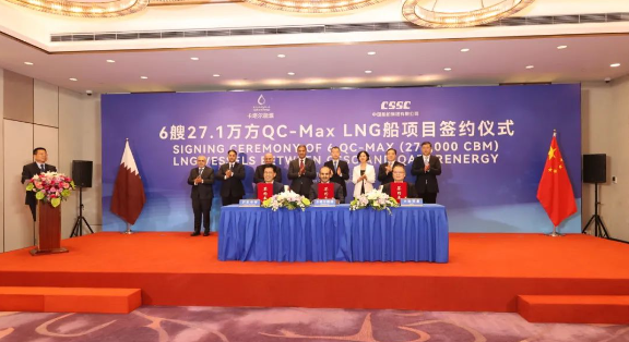 9月9日,三方新簽了6艘全球最大27.1萬立方米超大型LNG船訂單。至此,三方已累計簽訂24艘27.1萬立方米超大型LNG船、12艘17.4萬立方米大型LNG船,以載氣量計,位居全球各船廠之首。卡塔爾能源事務(wù)國務(wù)大臣、卡塔爾能源總裁兼首席執(zhí)行官薩阿德·謝里達(dá)·阿爾卡比,上海市副市長陳杰,中國船舶集團黨組成員、總會計師賈海英等出席簽約儀式。