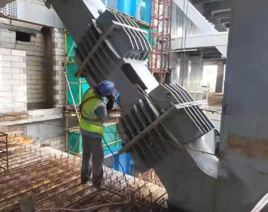 過去五年間,團隊肩負雙重使命,既要積極探索新興技術領域,又要緊密貼合實際需求,開展針對性技術攻關。面對大跨度建筑高效承載與裝配式鋼結構工廠化制造的行業難題,團隊深入剖析痛點,歷經多次驗證、迭代與優化,最終成功突破了技術“瓶頸”,創新研發出獲獎專利——“大跨度支座跨中協同預應力箱形連續鋼梁柱結構”。該新型結構可優化結構受力分布,顯著提升彈性承載力,有效減少鋼梁跨中撓度與支座變形,既增強了大跨度建筑韌性,又滿足了受損建筑快速功能恢復的特殊需求。為不斷提升自身技術水平,團隊還積極開展交叉學科研究,在技術與進度雙重壓力的嚴峻考驗下,憑著“死磕”到底的韌勁,各司其職、緊密協作,共同推動了多項配套產品的成功研發與落地,為行業整體技術革新貢獻了重要力量。