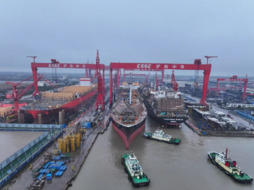 2月27日,大連造船建造的11.5萬噸成品油船65號船和93號船、11.5萬噸原油船11號船、LNG雙燃料動力30.7萬噸原油船113號船共4艘船舶同日開工,以奮斗姿態全力開啟馬年新征程。